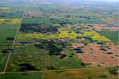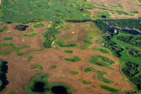 Would south-central Saskatchewan qualify as The National Golf Course? We marvel at farmers working around sloughs.