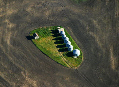 A reclusive little old house in a corner of the island,and silos boldly facing the sun,like sunbathers lined up on a beach