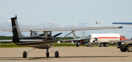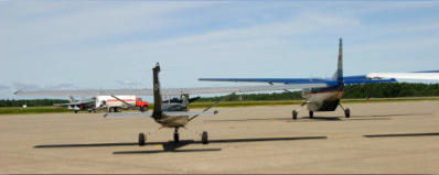 At Sault Ste. Marie we don't need to go into the terminal at all. Werner looks after the refuelling, and then does his planning for the next leg (to Wawa) in the flight service building geared toward general aviation.Important flight service facilities: chocolate bars for sale!