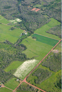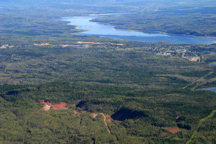 The red patch in the left foreground is a quarry.