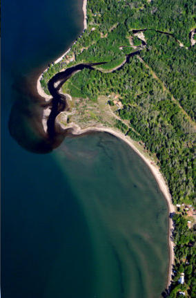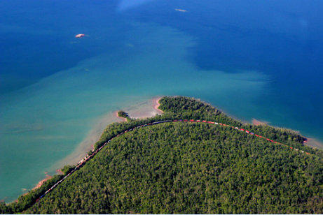 After taking a picture of the toy-like red train going around the bend, Werner flies out over the water so I can get some shots of the shoreline too...