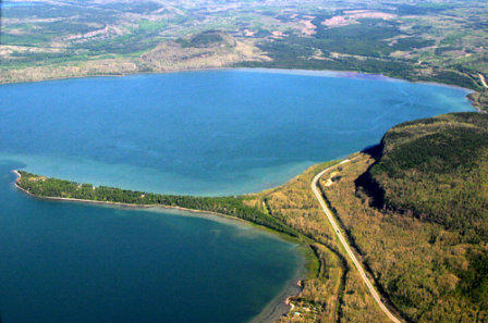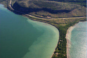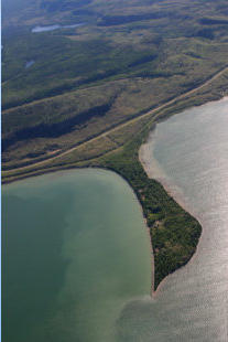 A strip of land reaching into a bay, creating a protective barrier against winds sweeping in