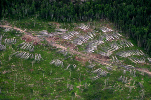 No doubt you already solved the mystery:not creatures, but logs harvested and laid out beside a road, waiting to be picked up.Dryden was the "Forest Capital of Canada" in the year 2000, during which 2000 trees were planted in twenty-one northwestern Ontario communities, andthe Boreal Forest Website was started.An interesting article in the March 2001 "Logging and Sawmilling Journal" is about a lumber company in the area that is involved in reforestation: Skene Lumber.