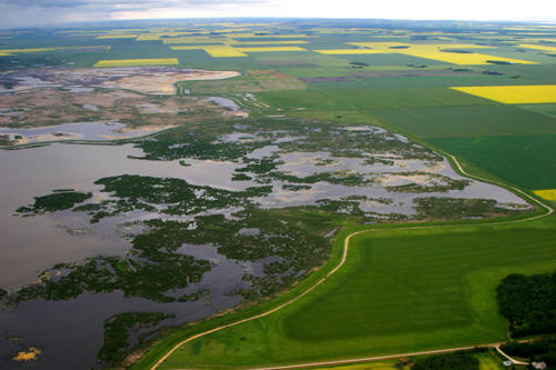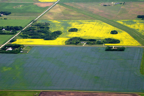 biting into the strict rectangular pattern of the fields.