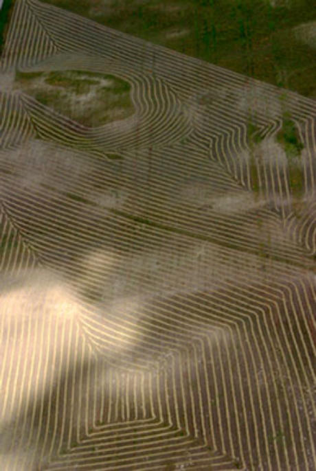 Patterns of the harvest, light, and shadow together create