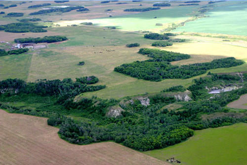 Fields fringed by green slopes of river valleys